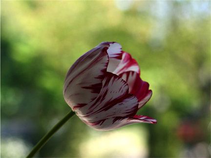 True Rembrandt tulips are now illegal to sell, as result of this effects of the virus on other plants. But mock-rembrandts are available, and I'm guessing that's what I have in my back yard. Here is a picture. Suck on it good and long brothers and sisters. For it is purty.